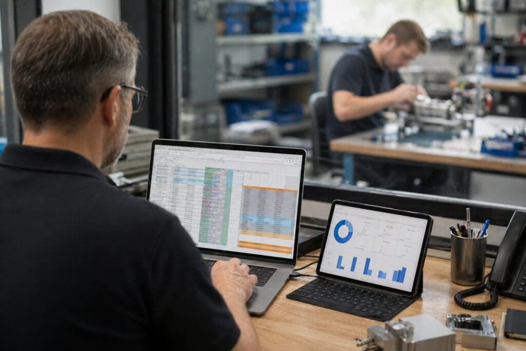 This guide is for MDs and Operations Managers at 10-50 person equipment, device, or machinery manufacturers using Xero, QuickBooks, or Sage 50 for accounts, who have decided spreadsheet stock control has to go and want to do the switch without breaking production. If that’s you, the good news is that most of the pain is avoidable — you just have to spend a week on preparation before anyone touches new software.
