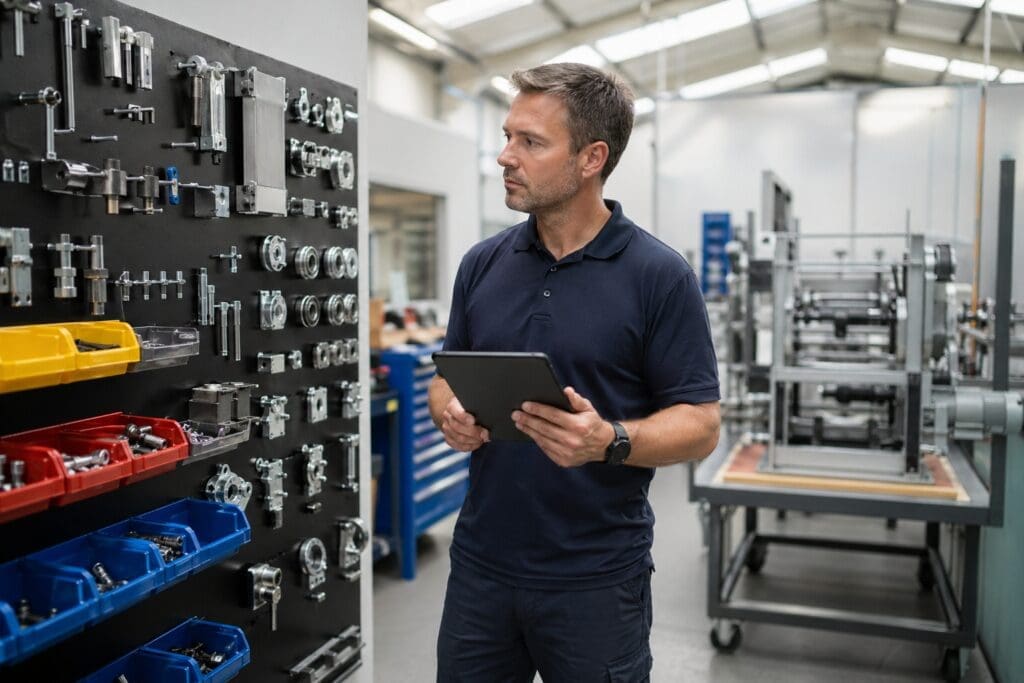 This post is for Operations Directors and MDs at 20-80 person SME equipment, device, and machinery manufacturers who already run their accounts on Xero, QuickBooks, or Sage 50, and whose stock is still held together by a spreadsheet and a senior assembler with a good memory. The term “inventory control” applies to you, but it means something specific, and it’s not what the generic guides describe.